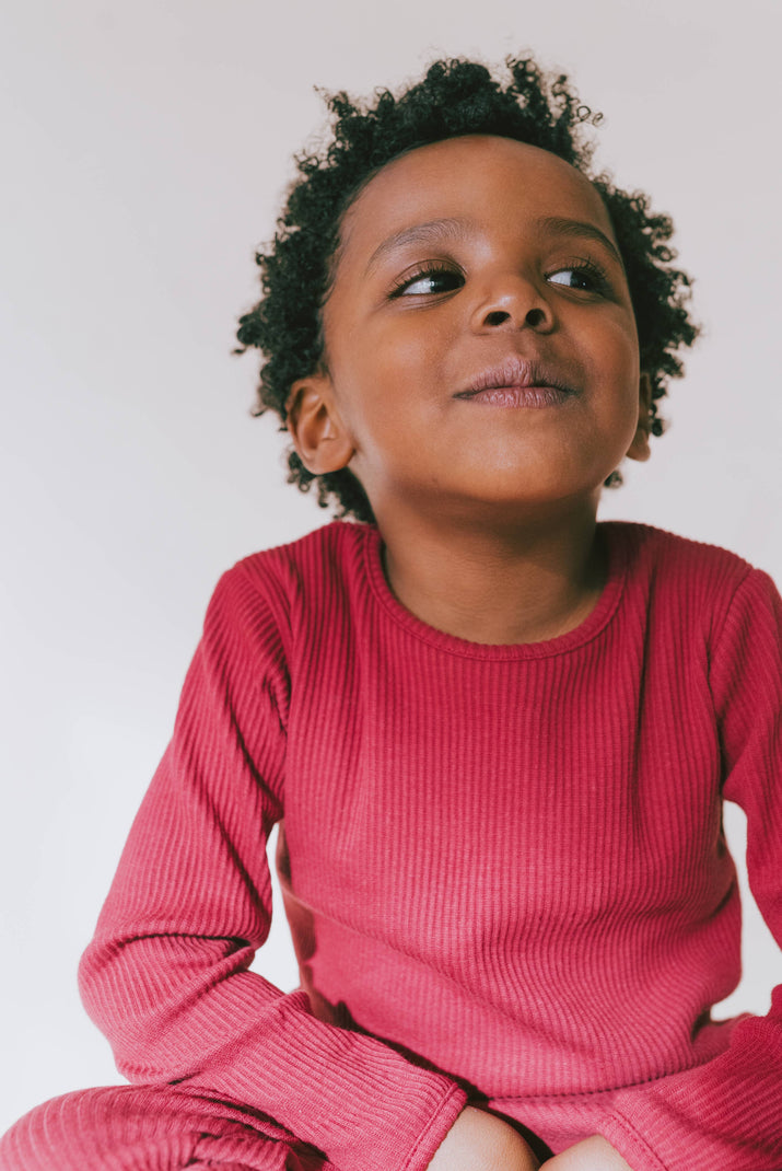 Adult Unisex Ribbed Loungewear and Matching Pajamas/Pyjamas (Claret Red)